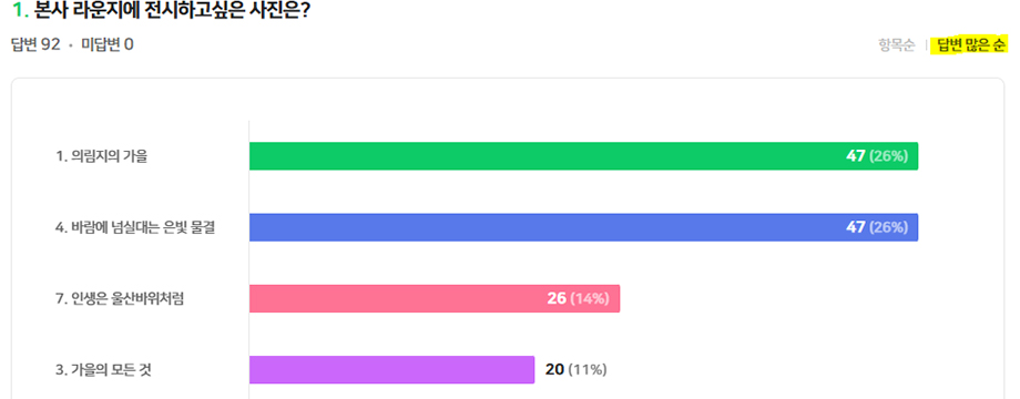 회사 내 ‘라운지에 전시하고 싶은 사진’이라는 주제로 투표를 진행했다.