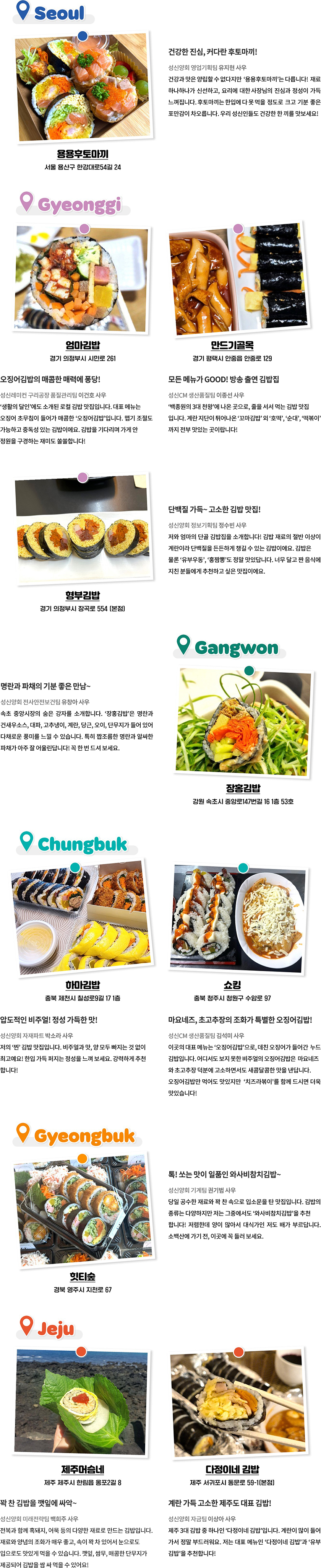 성신인들의 김밥 맛집으로 더욱 행복한 나들이를 완성해 보자.