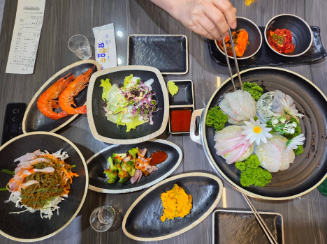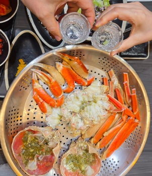 공복 상태였던 우리는 ‘아점’으로 주문진의 ‘주공면옥’에서 시원한 냉면을 한 그릇씩 먹었습니다. 차가운 육수 속의 면발이 열기를 단숨에 날려 주더라고요. 저녁에는 강릉의 유명 맛집 ‘최대게’에서 푸짐한 대게를 맛보았습니다. 하얗고 탱탱한 게살을 발라 입안에 넣을 때마다 피로가 사르르 녹아들었습니다.