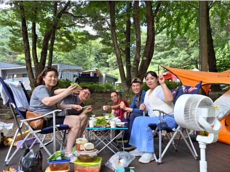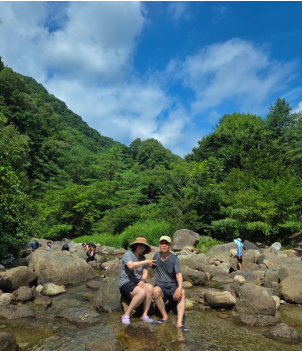 첫째 날은 피서지로 유명한 다리안 계곡에서 캠핑을 했는데, 물이 맑고 시원해서 발을 담그기만 해도 더위가 싹 가셨습니다. 주변에도 캠핑이나 돗자리 피크닉을 즐기는 가족들이 많았습니다. 그런데 캠핑이라는 게 제법 힘들더라고요. 50대 후반의 캠핑이란, 나이가 든다는 것이 무엇인지 새삼 깨닫게 되는 경험이었습니다. 그래도 저녁에는 대명콘도에 들러 사진 찍기 좋은 곳에서 이리저리 사진을 찍어 보고, 근처 야시장에서 7080 감성의 콘서트를 통해 잠시 옛 추억을 회상하기도 했습니다.