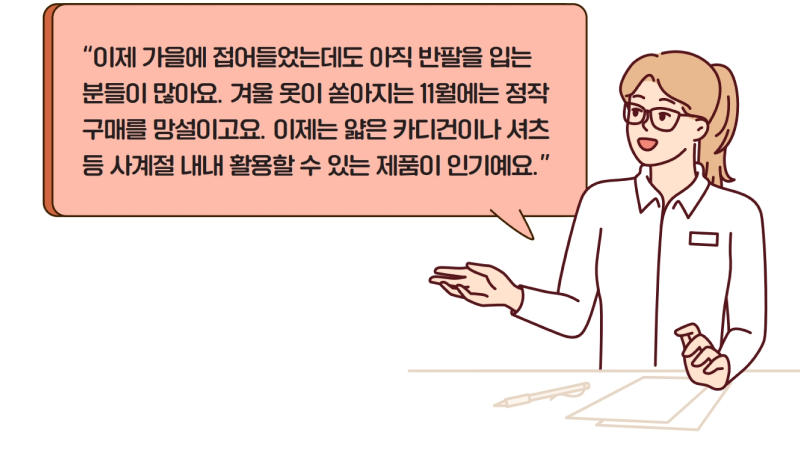 짧아진 봄·가을로 인해 계절의 경계가 흐려지며, 기존 S/S, F/W 등의 시즌 사이클이 무의미해졌다. 이에 패션 업계는 계절의 구분이 없는 ‘시즌리스(Seasonless)’ 제품을 확대하고 있다. 또한 변덕스러운 ‘기후’ 변화에 유연하게 대비하기 위해 UV 차단, 쿨링, 발열 등의 기능이 강화된 ‘기능성 제품’도 주력으로 내세우는 추세다.