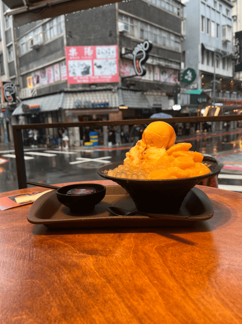 잠깐의 대기 후 구매할 수 있었다. 크래커를 손에 든 우리는 근처 빙수가게에 들러 망고빙수를 먹었다.