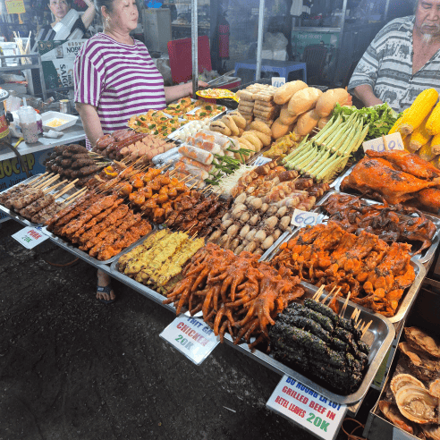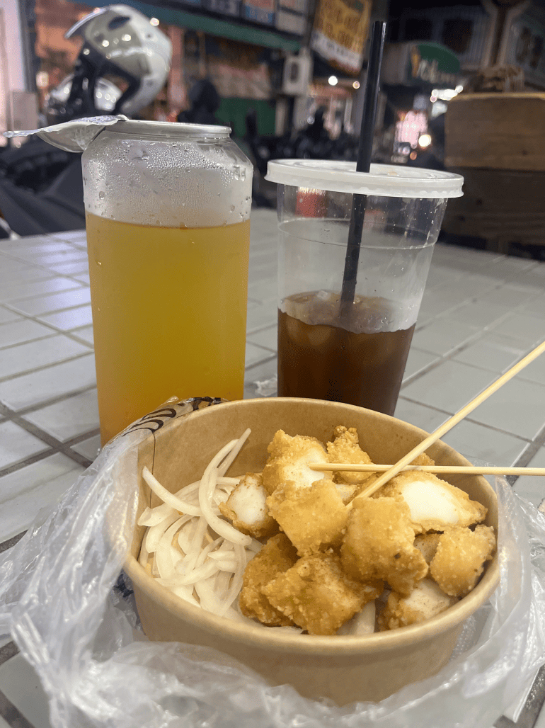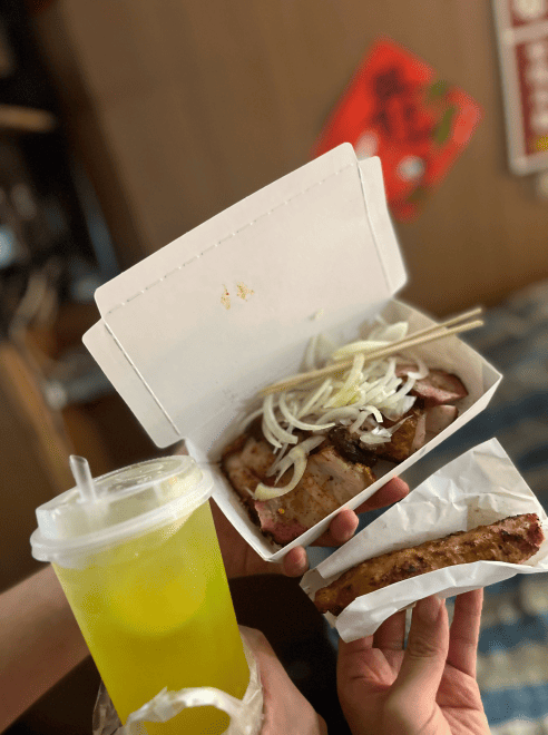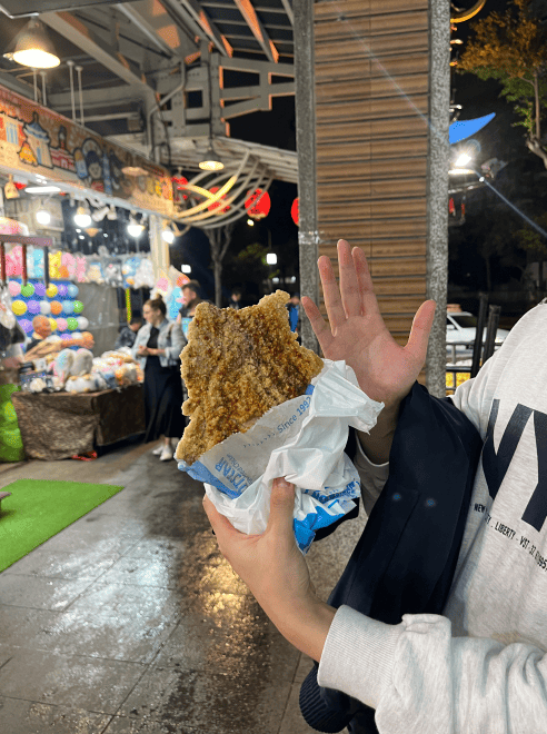 우리가 야시장에 도착했을 때, 날씨가 급격히 나빠졌다. 태풍의 영향인지 비바람이 거세게 몰아쳤다. 야시장 거리는 텅 비어 있었지만 그럼에도 문을 연 점포가 몇 군데 있었다. 우리는 크리스피 삼겹살, 닭고기 소시지, 후추빵을 먹고 숙소로 돌아왔다. 다행히 계획했던 음식은 대부분 맛볼 수 있었다.
