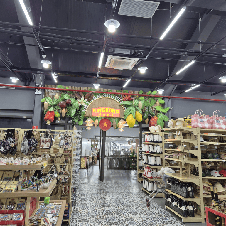 새벽에 도착한 푸꾸옥은 조용하고 따뜻했습니다. 사전에 ‘투어픽’을 통해 공항 픽업 서비스를 신청해 두어, 라운지에 짐을 맡기고 아침을 간단히 해결한 후 바로 ‘킹콩마트’로 향했습니다. 킹콩마트는 푸꾸옥에서 가장 유명하고 큰 대형마트 중 하나로 베트남 특산품, 간식, 기념품, 의류, 생활용품 등 다양한 상품을 판매하여 여행객들의 필수 쇼핑 코스로 꼽힙니다.