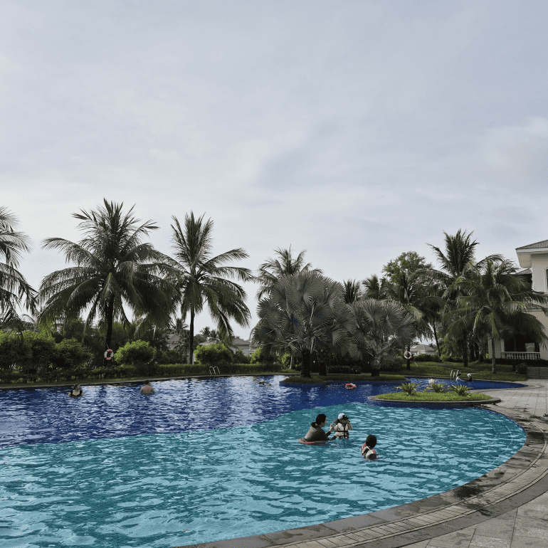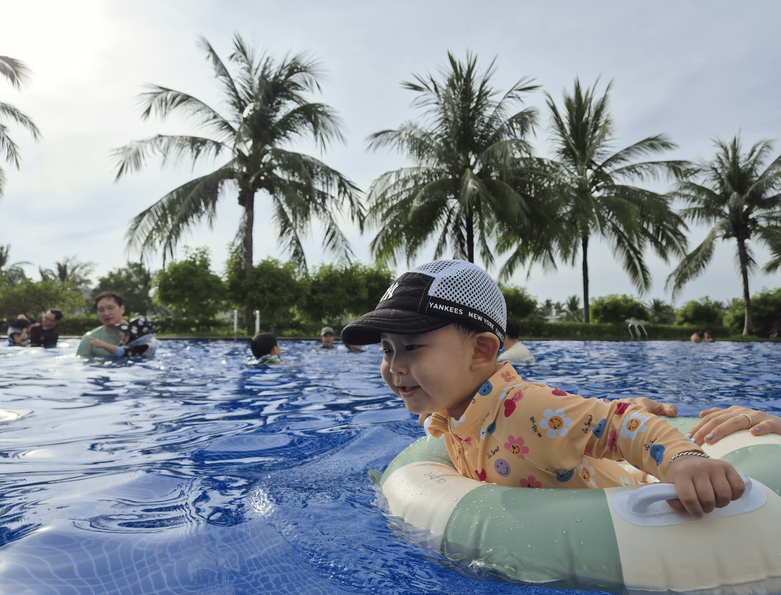 저희가 머문 곳은 푸꾸옥 북부에 위치한 ‘빈펄 리조트’입니다. 리조트 안에는 넓은 수영장이 있는데, 유아용 풀도 잘 갖춰져 있어 아이가 있는 가족에게 최적화된 곳이었습니다. 시설도 잘 갖춰져 있어 안전하게 즐길 수 있고, 베트남 날씨 자체가 따뜻해서 아이들이 오래 물놀이를 해도 춥지 않았습니다.