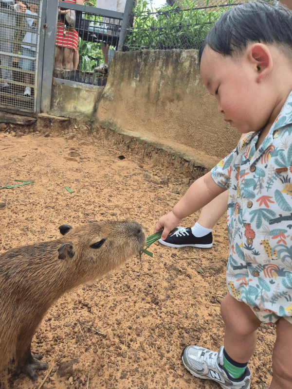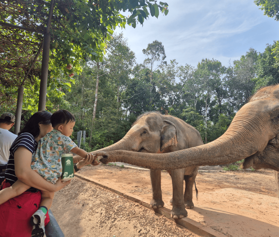 아이들이 가장 좋아했던 순간은 동물에게 먹이를 주는 시간이었습니다. 동물을 좋아한다고 해도 막상 실제로 보면 큰 몸집에 무서워하기도 하는데, 작은 손으로 먹이를 건네면서도 겁내지 않고 웃는 걸 보니 정말 잘 왔구나 하는 생각이 들었습니다. 푸꾸옥 가족 여행을 계획하신다면 사파리 VIP 투어는 꼭 추천드립니다.
