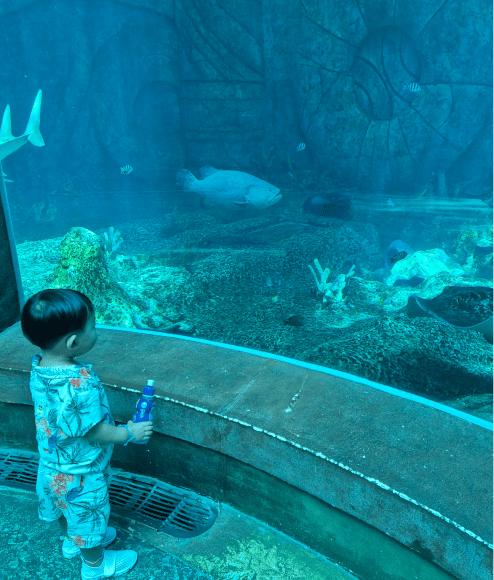 리조트에서 운영하는 버기카를 타면 금방 ‘빈원더스’에 도착합니다. 물론 걸어서도 갈 수 있을 정도로 무척 가깝습니다. 저희는 가장 먼저 아쿠아리움에 방문했습니다. 시원한 실내에서 다양한 해양 생물을 볼 수 있어 아이들도 신나게 구경하더라고요.