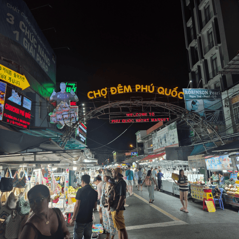 열대 과일과 간식을 파는 노점상, 다양한 해산물 식당으로 가득해 구경하는 재미가 있습니다. 비록 사람이 너무 많아서, 어린 아이와 돌아다니기에는 힘들지만, 푸꾸옥 밤의 활기찬 분위기를 느끼기에는 충분했습니다.