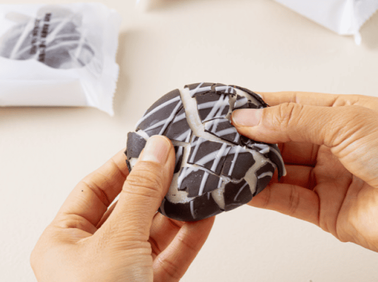 쉽게 물린다는 후기를 미리 봐서 그런지 큰 기대는 하지 않은 채로 한입 먹어 보았습니다. 그런데 예상보다 훨씬 괜찮은 맛이더라고요. 초콜릿 코팅 부분은